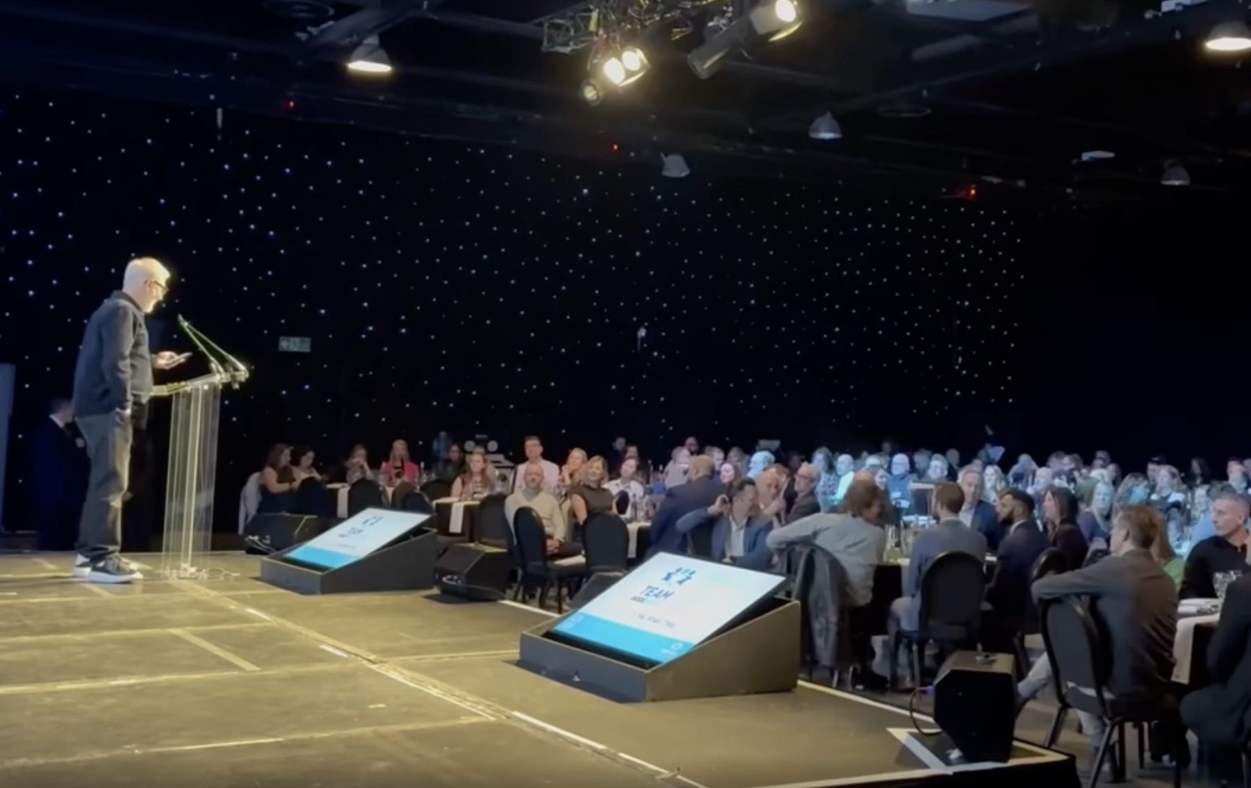 (YST CEO Chris Thompson on stage at the Team Modeshift National Travel Awards.)