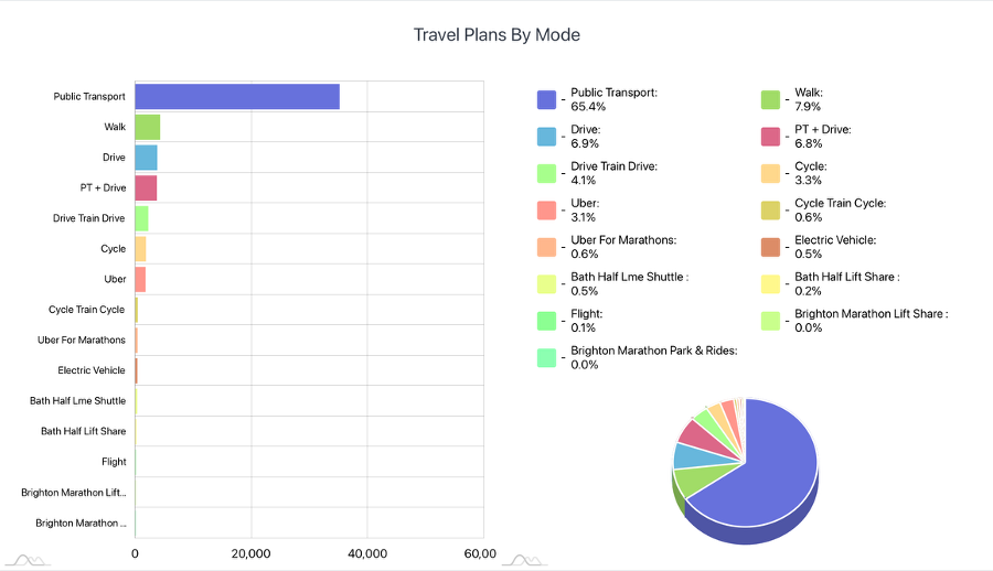 (Example: a very impressive modal split from London Marathon Events, viewed from the YST Dashboard)