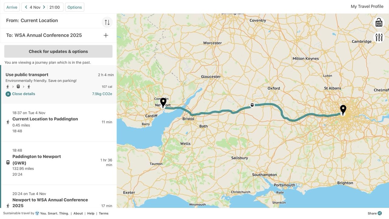 As a WSA partner, ‘You. Smart. Thing.’ also made the trip using sustainable travel. One of the routes taken combined walking with a Great Western Railway service into Newport – a simple, low-emission journey that avoided congestion and the need for parking.
